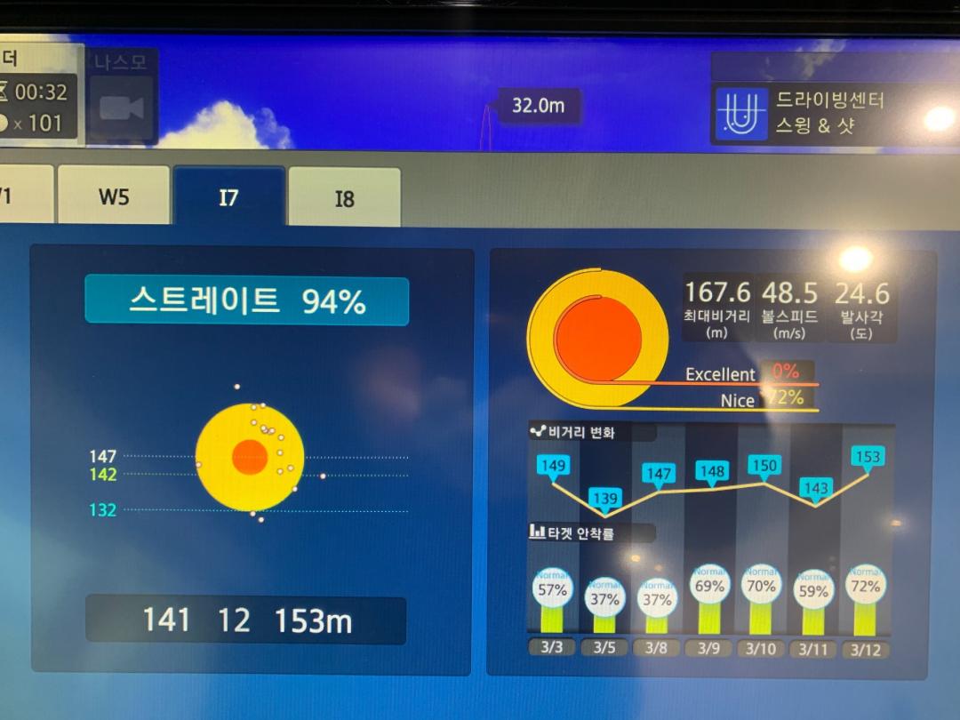 아이언 샤프트를 알아보고 있는데요. 현재 타이틀 718ap2/ns 880amc r 사용중입니다. 원래는 950r로 골프 시작했다가 손목 부상 이후로 880amc로 바꿔서 지금까지 써오고 있습니다. 만족하면서 잘 써오고 있었는데 요즘들어서 연습을 좀 꾸준히 했더니 샤프트가 낭창거리는 느낌이 드네요. 7번기준 런포함 145~150에 꾸준히 떨어지던게 요즘은 전후좌우로 편차가 좀 큽니다(사진 참고). 해서 중량을 조금 높이고 싶은데... 지금 보고있는게 다이나믹골드 투어블랙 90 s200입니다. 블랙이라 참 마음에 드는데ㅎㅎ 검색해도 정보가 별로 없네요.