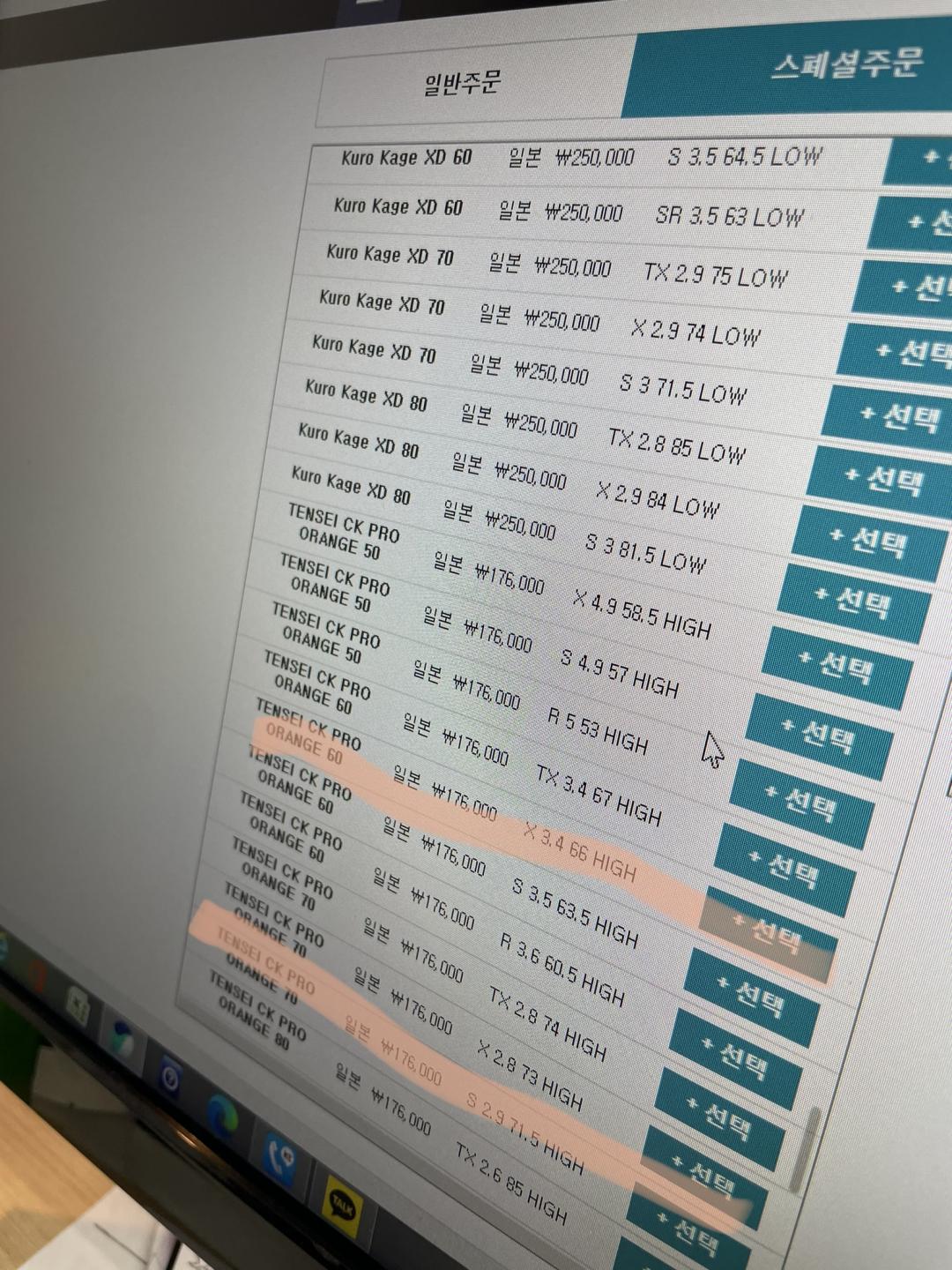 g425 lst 9도에 텐세이 ck pro orange로 정했습니다