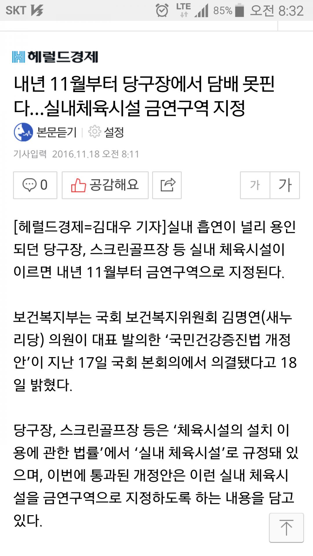 저도 비흡연자여서 환영인데 ,,, 흡연자들이 동행하는 경우가 많은데 흡연자들이 별도 흡연할 수 있는곳에 왔다갔다 할테니 경기시간이 기존보다 늘어나겠네요. |