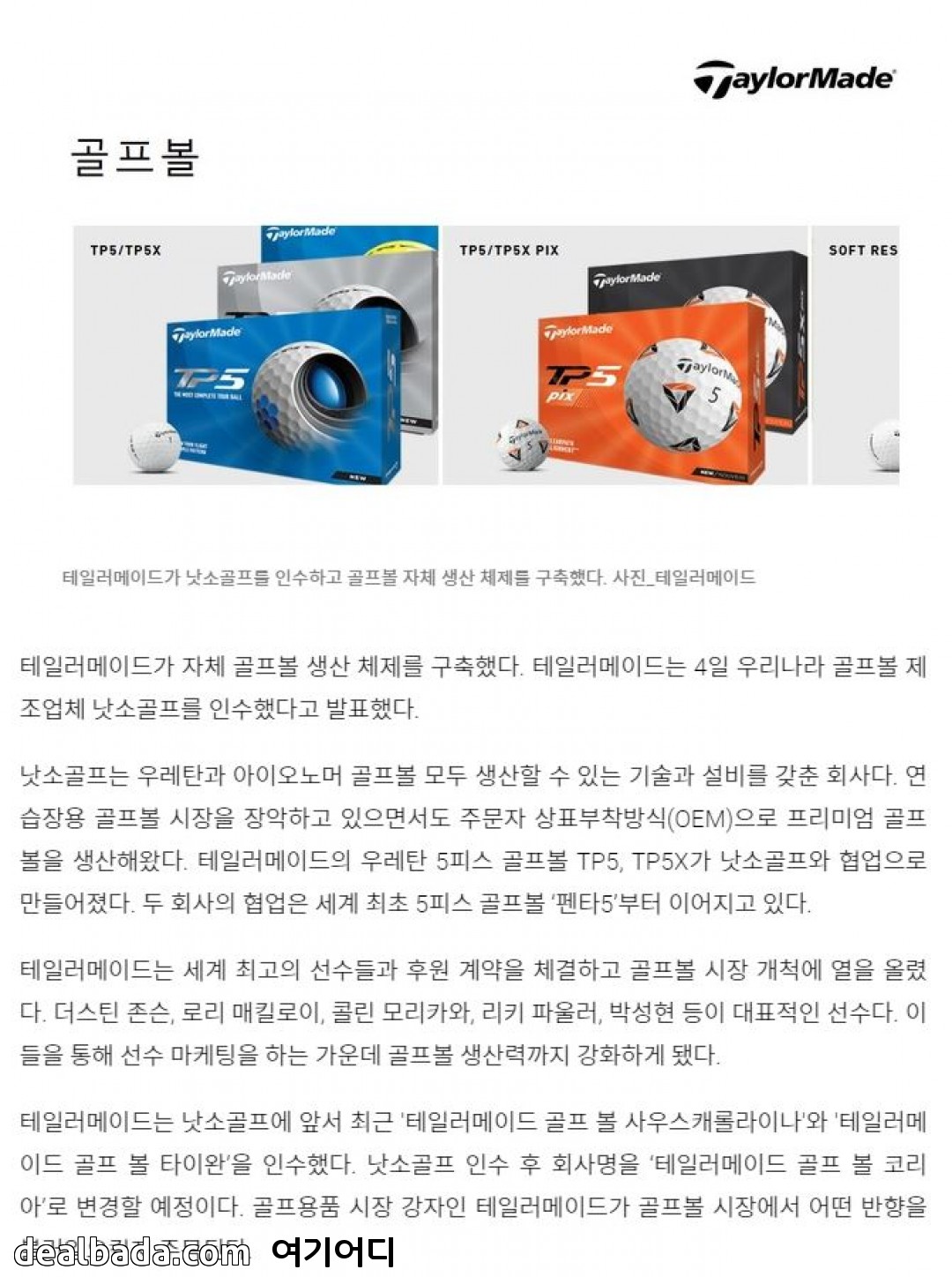 기존에도 테일러메이드 골프공 가격대가 있는건 나쏘에서 만든거로 아는데 결국 인수하나보네요 |