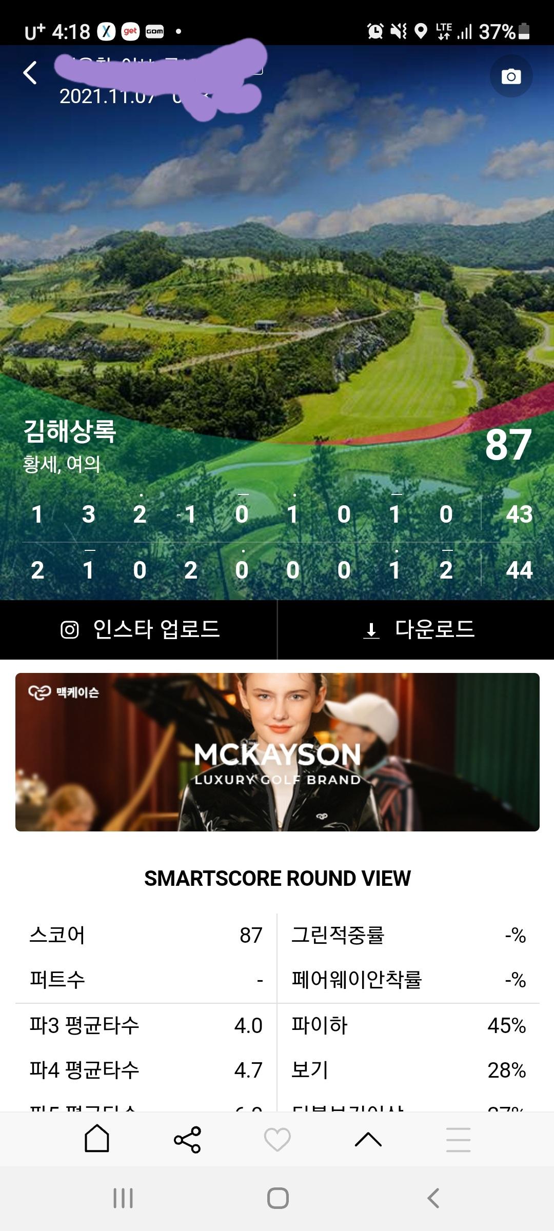 1클럽 내 컨시드 말고는 항상 룰데로 친거니 요즘 골프가 많이 늘었다는게 느껴지네요