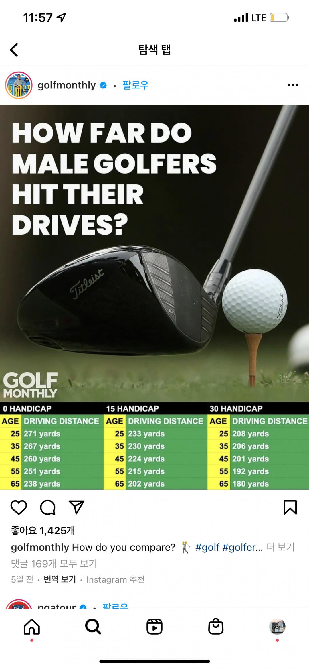남자 골퍼들은 드라이브를 얼마나 멀리 치나요? 라는 제목의 포스팅입니다. ㅎㅎ