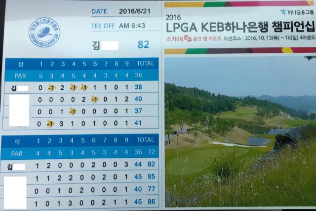 그러니깐요.. 마지막홀 욕심나서 우드로 티샷해 220m 보내고 90m 남은 세컨샷 해저드빠지더니 어프로치 뒤땅까지... ㅠㅠ