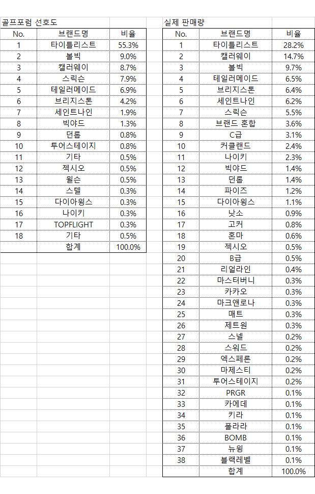 당시 55.3%로 압도적으로 1위를 한 브랜드는 역시나 타이틀리스트 였고, 2위 볼빅, 3위 캘러웨이 순이었습니다.