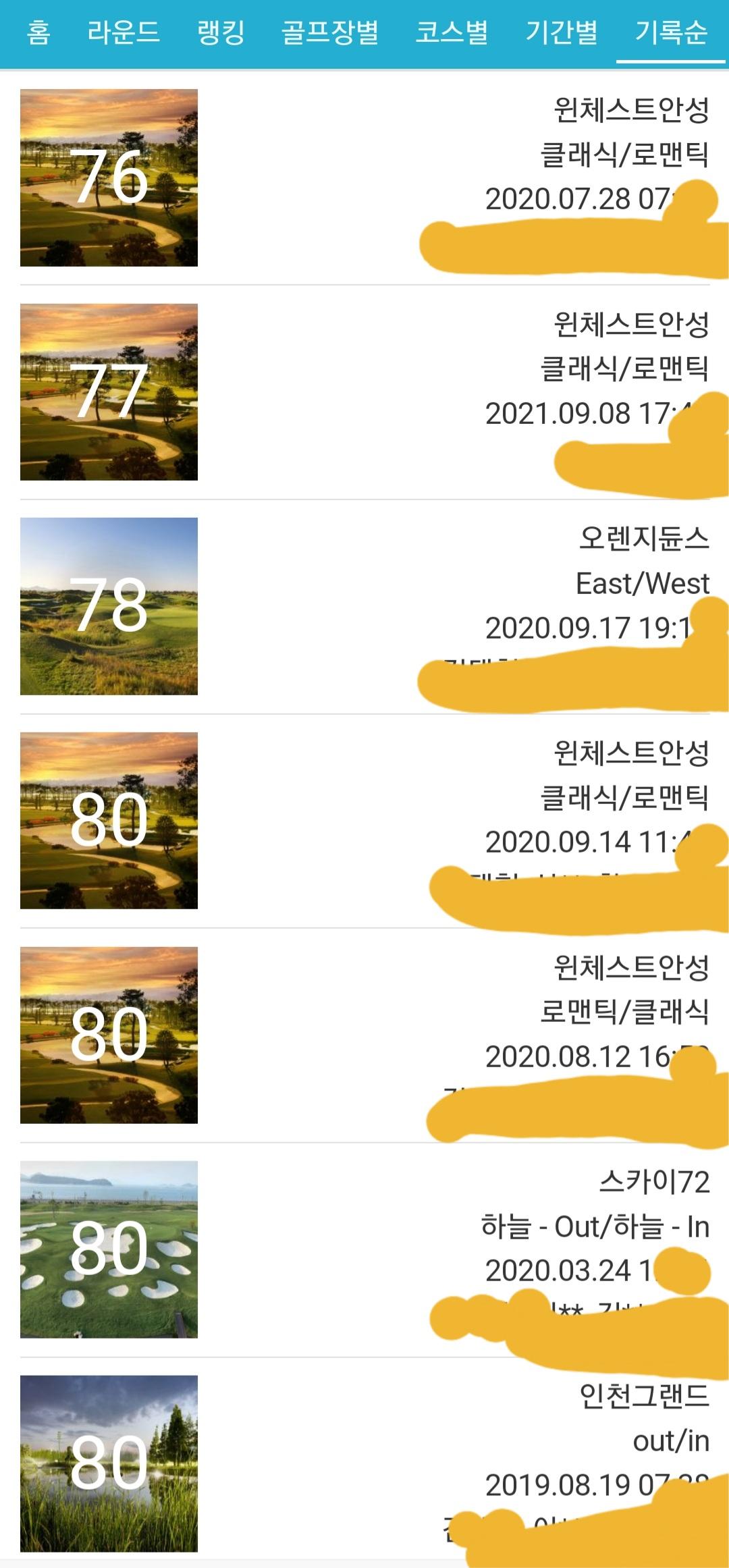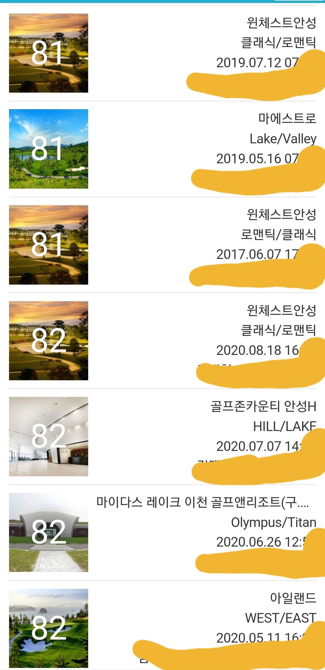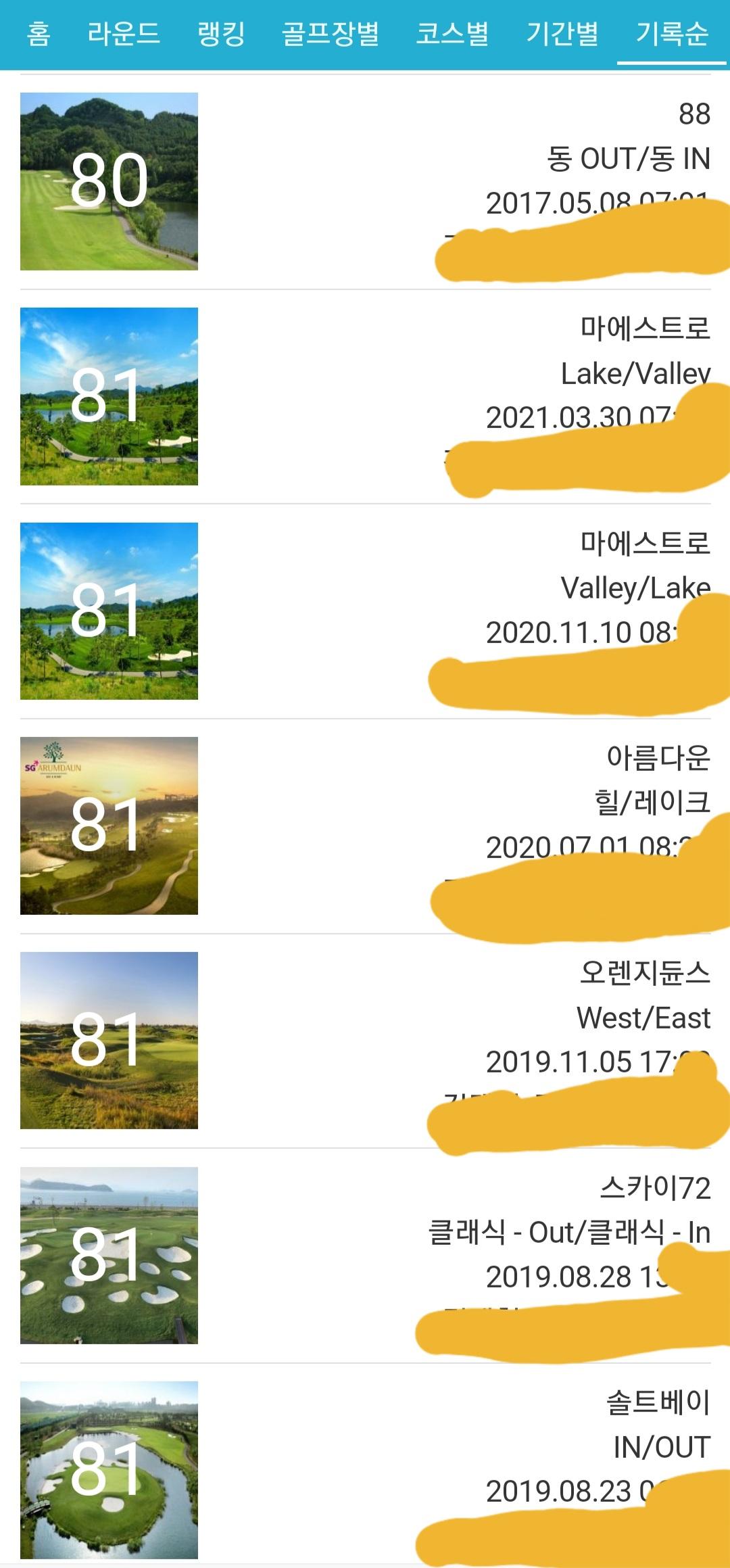 그리고 스코어가 80대 초중반으로 안정이 되었고 후반 2,3개홀 남겨놓고 무너져 못했던 싱글도 몇번하게 되었네요