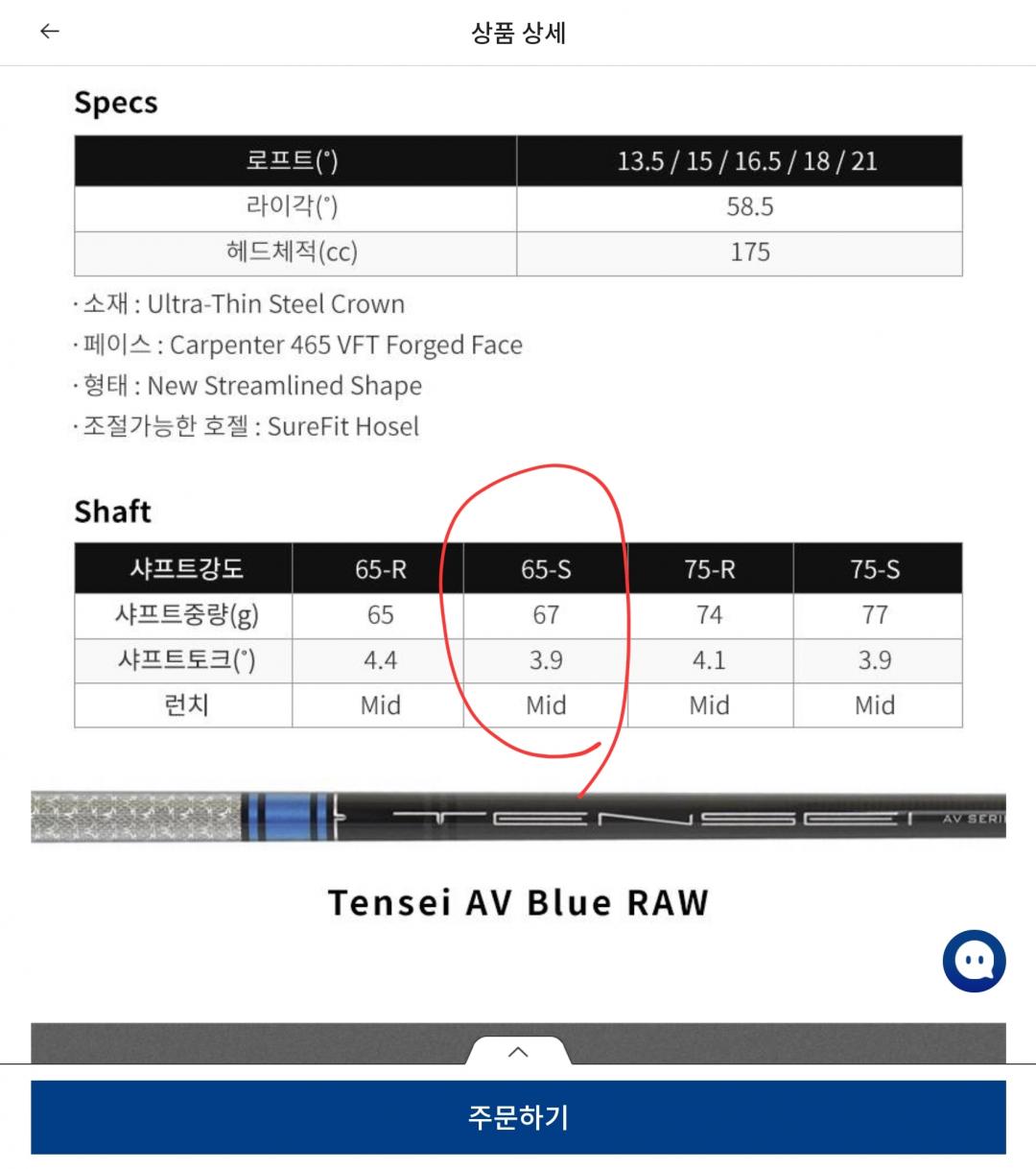 페어웨이 우드 18도 사려고 하는데 골프존마켓에 스탁 텐세이 블루 65s 있길래 구매하였는데