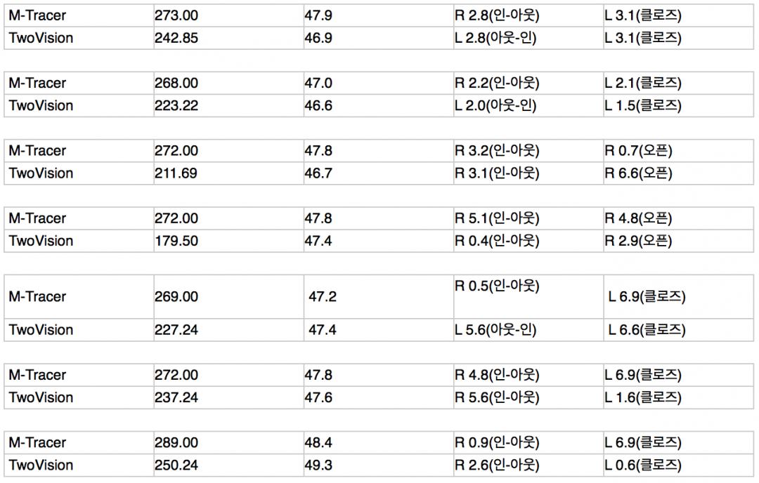 (아래는 TwoVision의 데이터와 M-Tracer의 데이터 비교 샘플입니다)
