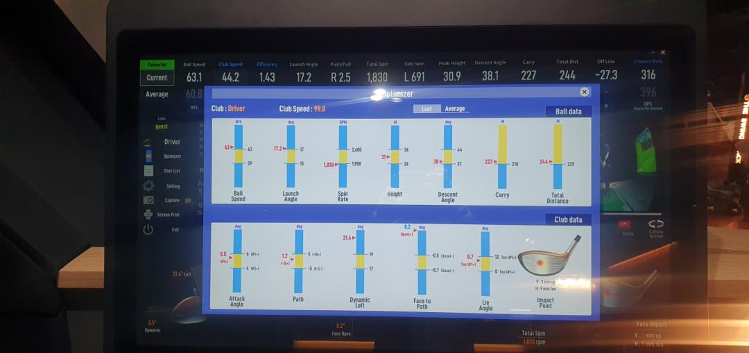 1시간정도 치니 평균 좌로 30m정도 훅이 난발하더군요. 당황스러울정도로...훅이...