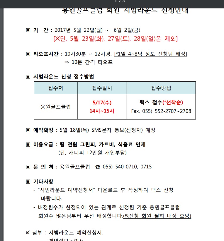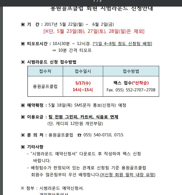 용원골프클럽회원에 한해서 시범라운드 신청받는 답니다 ㅎㅎ