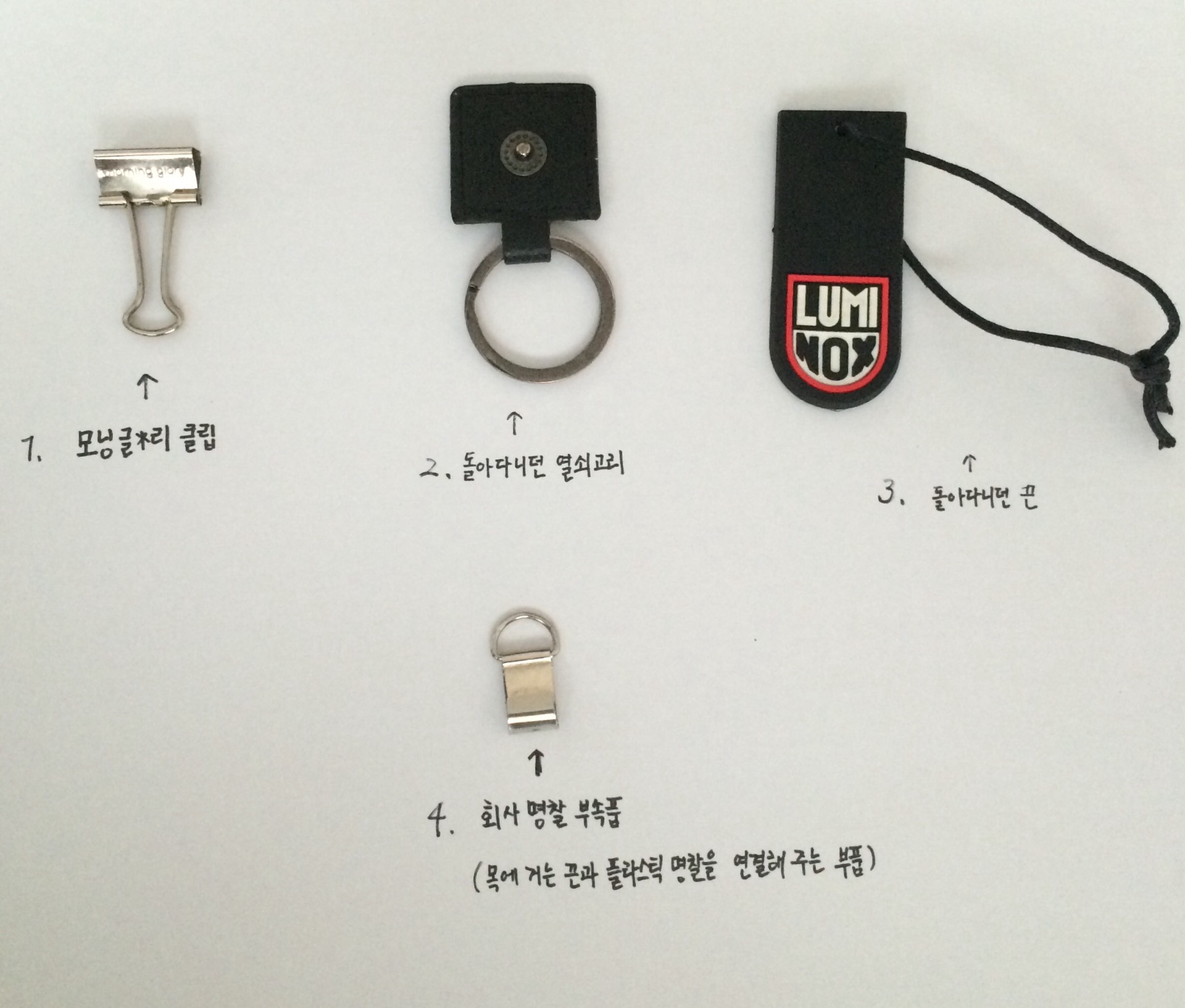 2번 열쇠고리에 3번 끈 연결하면 되는데 서랍에서 못쓰는 4번 고리가 나와서 연결해 봤습니다.