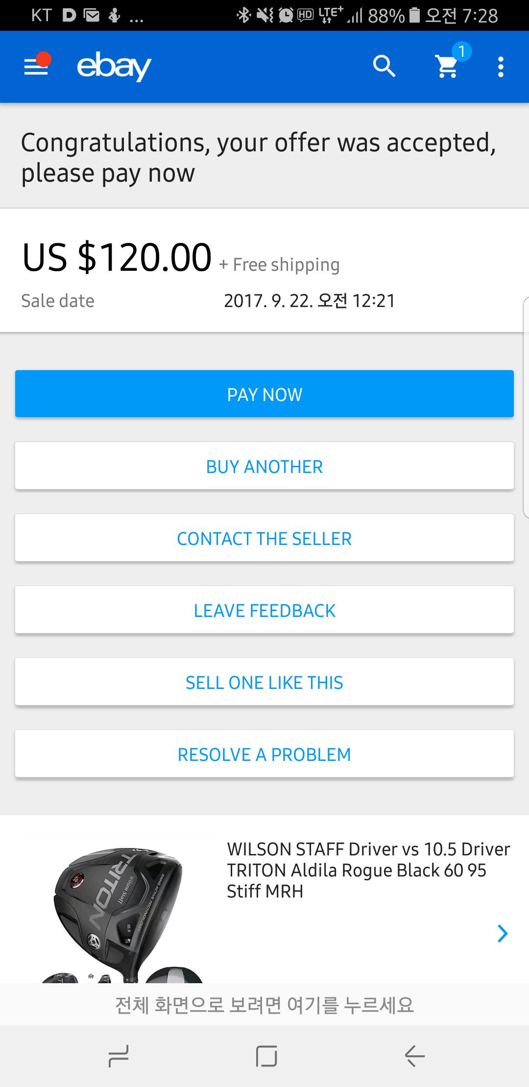 축하합니다. 한국까지 배송비 포함해서 120달러인가요?