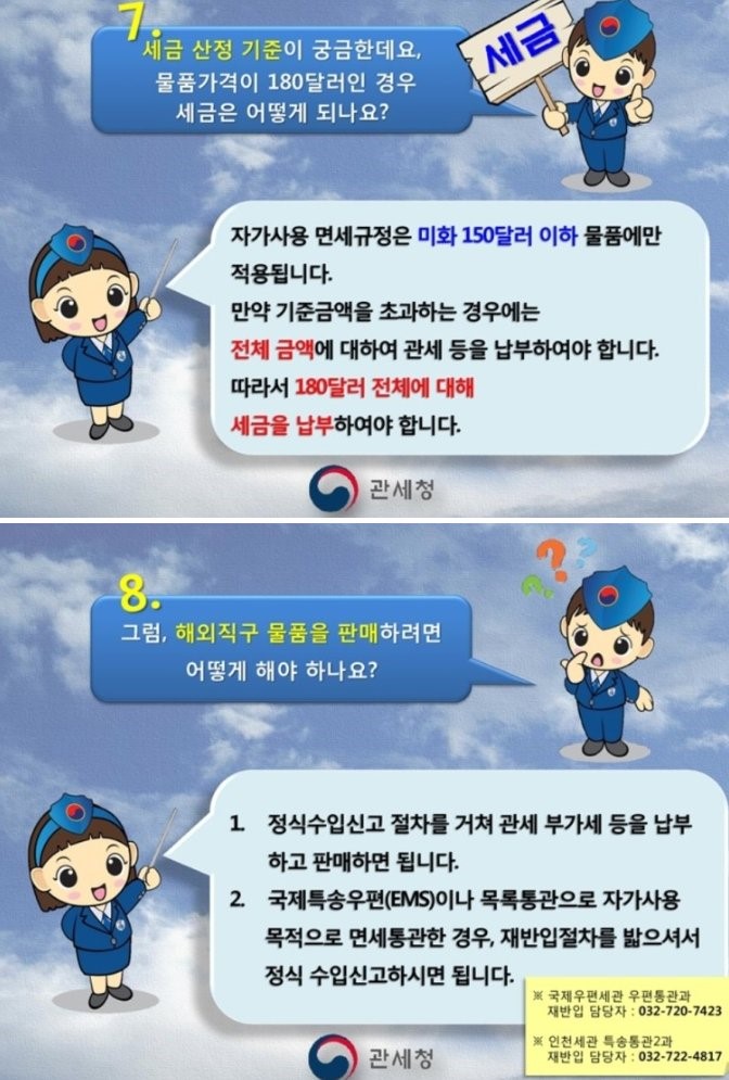 자가사용목적에 대해서 면제해준 200불이하 목록통관 이런거라..