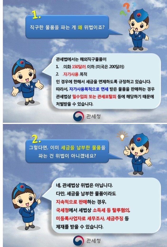 직구로 사서 본인이 사용하다가 중고로 파는것은 괜찮은거 맞죠? | ||