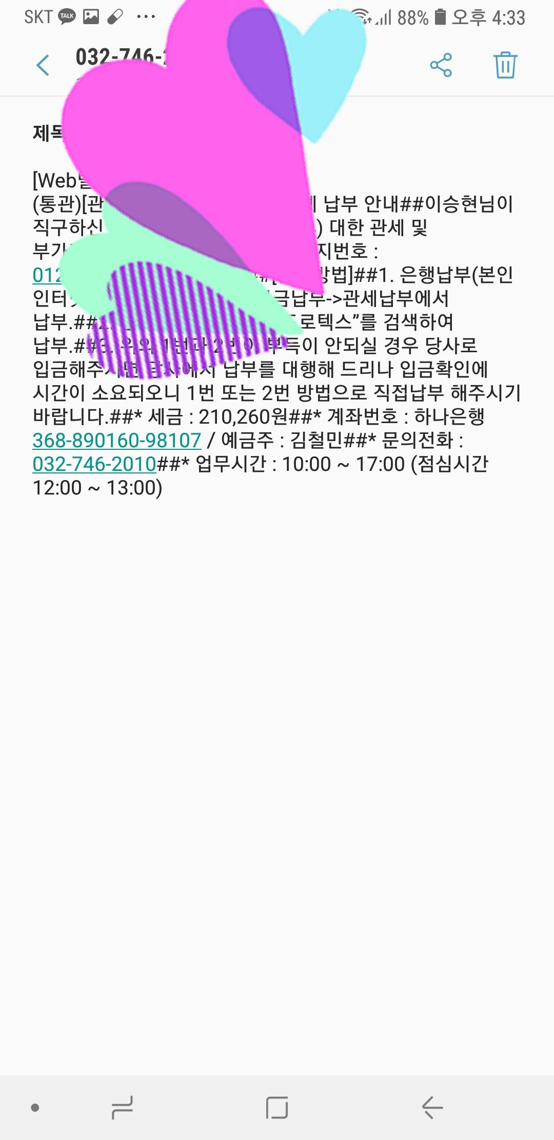 현제 관부가세 30일날내었습니다.