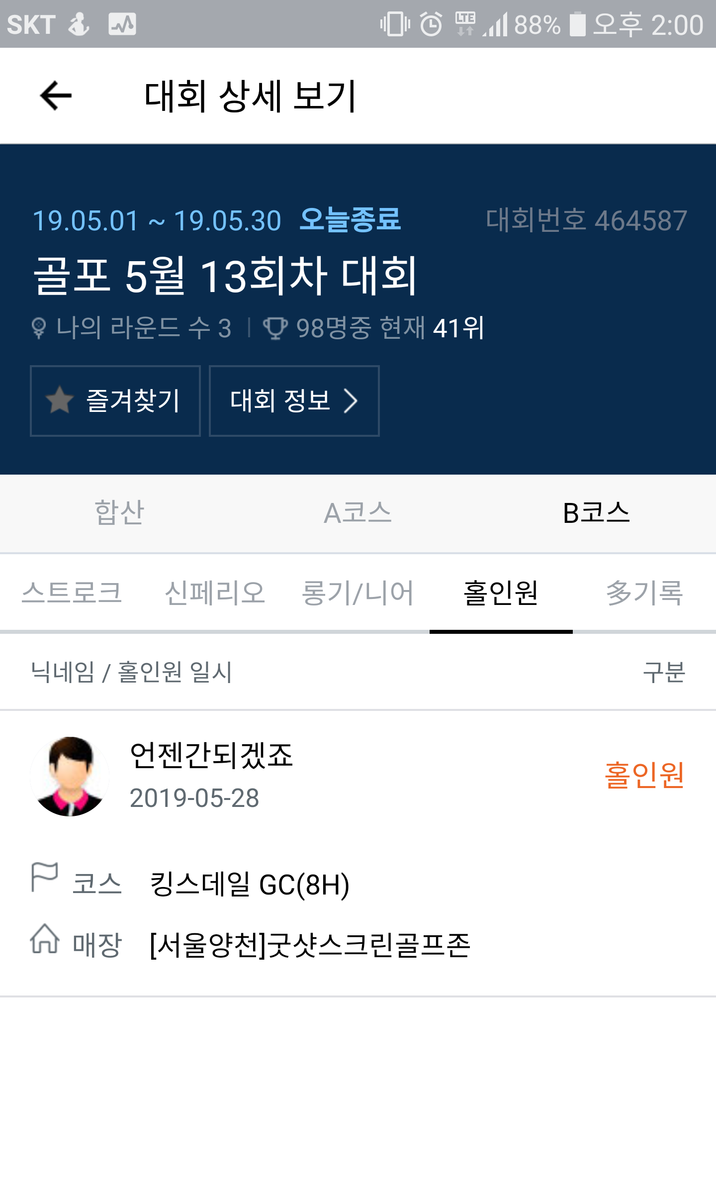 축하드립니다. 대회에서 홀인원이 종종 나오네요. 대단하신분들 ㄷㄷㄷ |