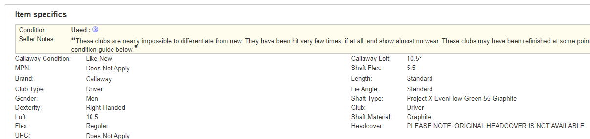 공홈에서 135불에 나와있는 5번 우드를 102불에 구입 완료했습니다.