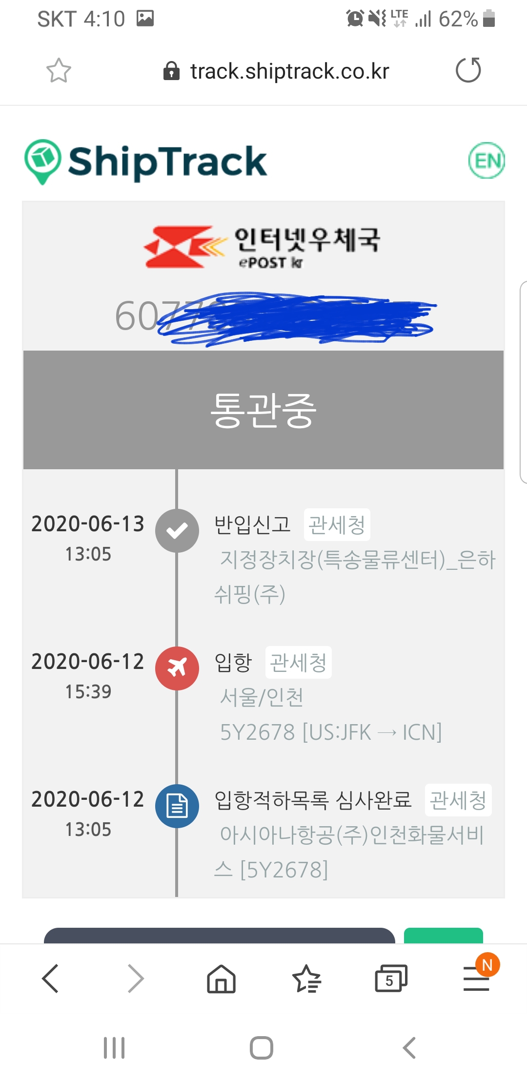 모바일지로라는 어플에서 관세 조회하면 뜹니다 |