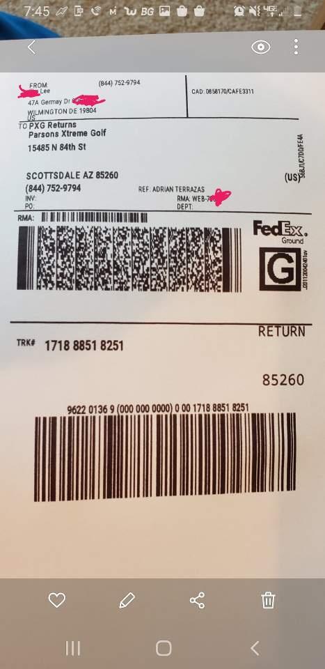 미국에 있는 친구에게 부탁해서 전화를 했습니다. 새거로 교환해주기로 컨펌받았고, 보낼때 파손된 헤드만 pxg 수