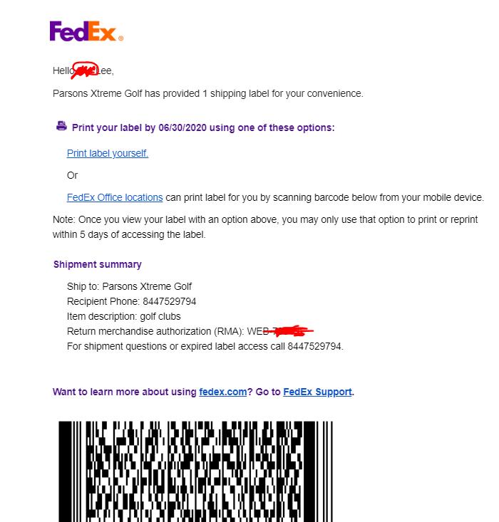 이런경우엔 리턴라벨을 (사진에 Print label yourself) 출력해서 한국에서 택배보낼때, 기존 오더넘버, PXG와 주고받은 메일등도 같이 상자에 제품과 동봉해서 보내는 방법을 쓰시면 될것같습니다.