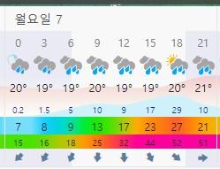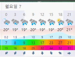 운좋게 군 체력단련장 배정(12시대)을 받았는데, 월요일 꽤 많은 양의 비가 예보되어 있어요.