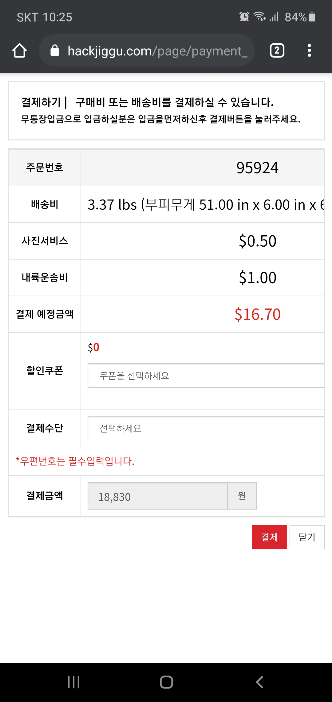 무검수 부피무게면제하시면 좀 덜나옵니다.