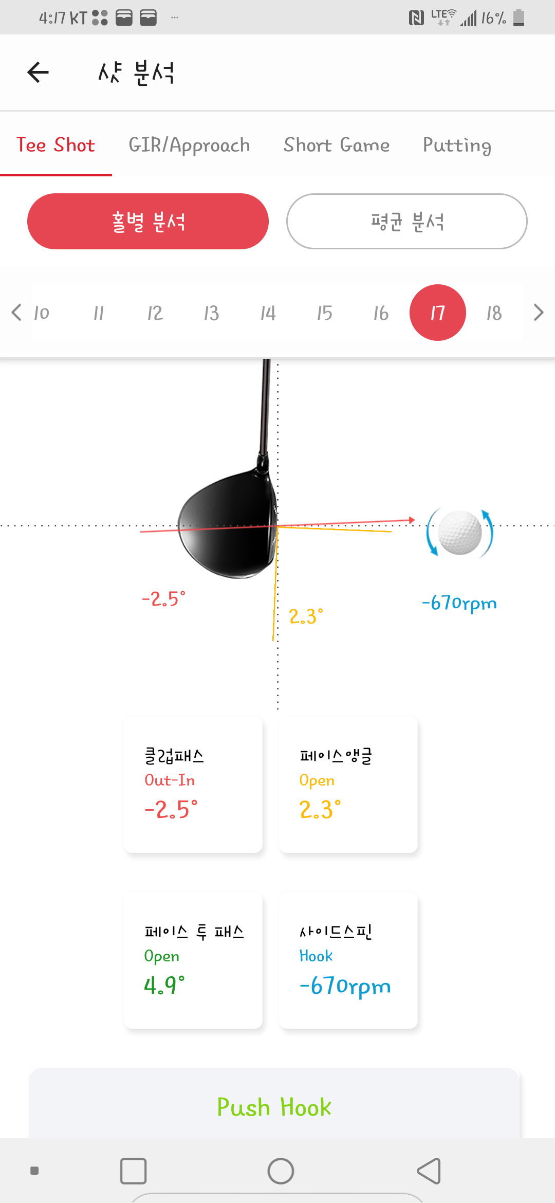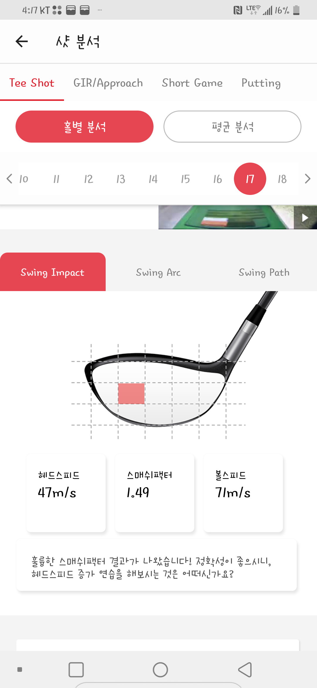 가끔 열려맞은 미쓰샷이 이쁜 드로우를 내면서 떨어지는데 남들은 굿샷이라 외쳐주지만 스스로 상당히 당혹스러운데요.