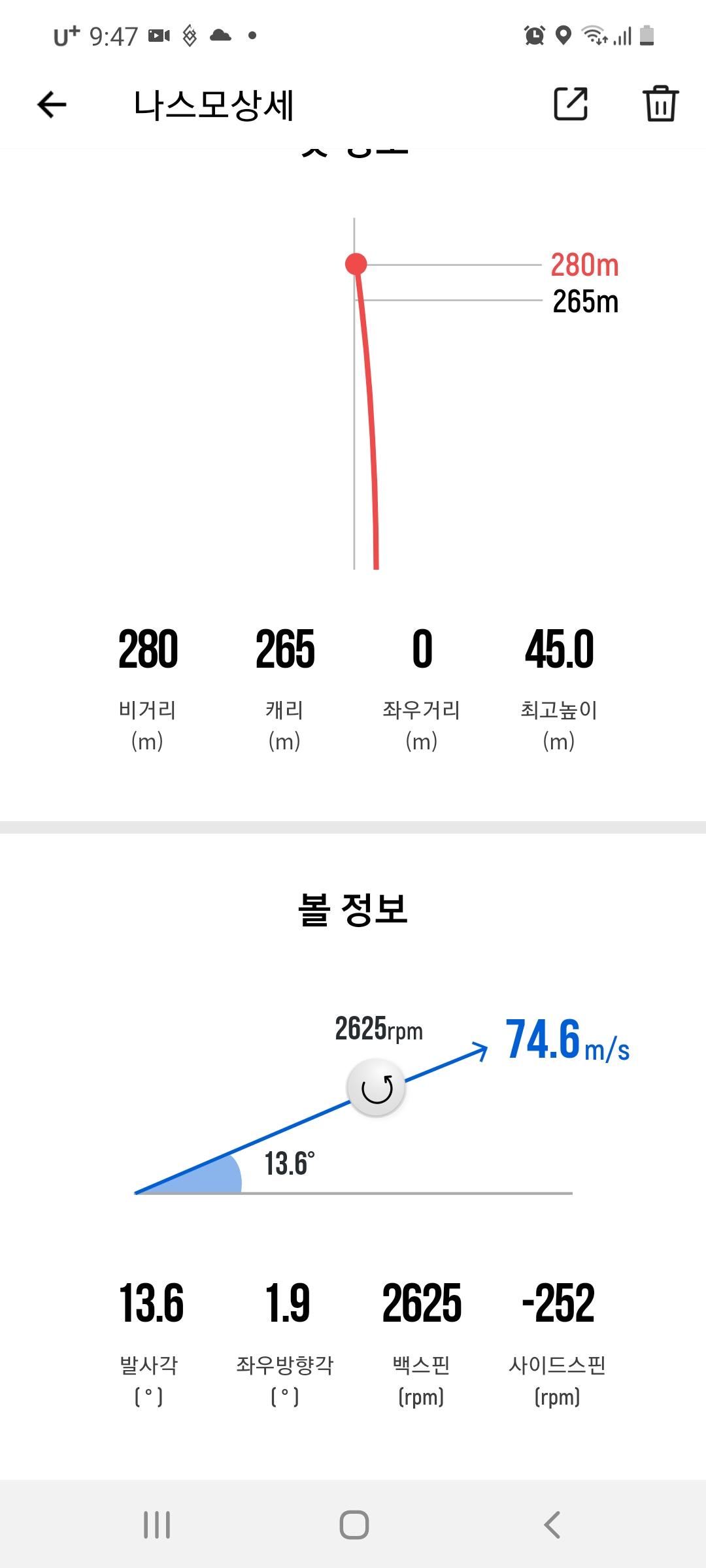 현재 드라이버는 볼스 평균 71이상 나오며 최대 75정도 나옵니다.