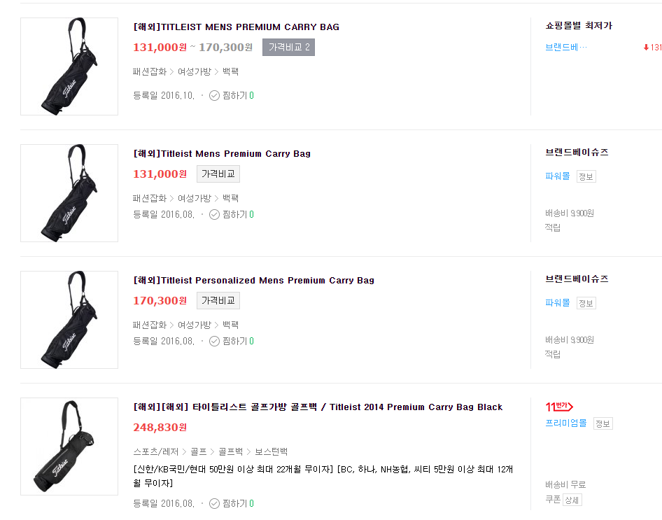 타이틀리스트 캐리백도 $69.99불 정도 하니까 연습장에 간단히 들고 가기 좋을것같아요!