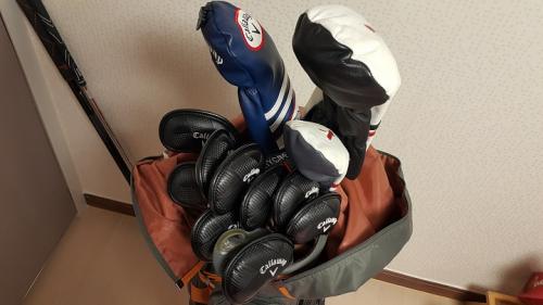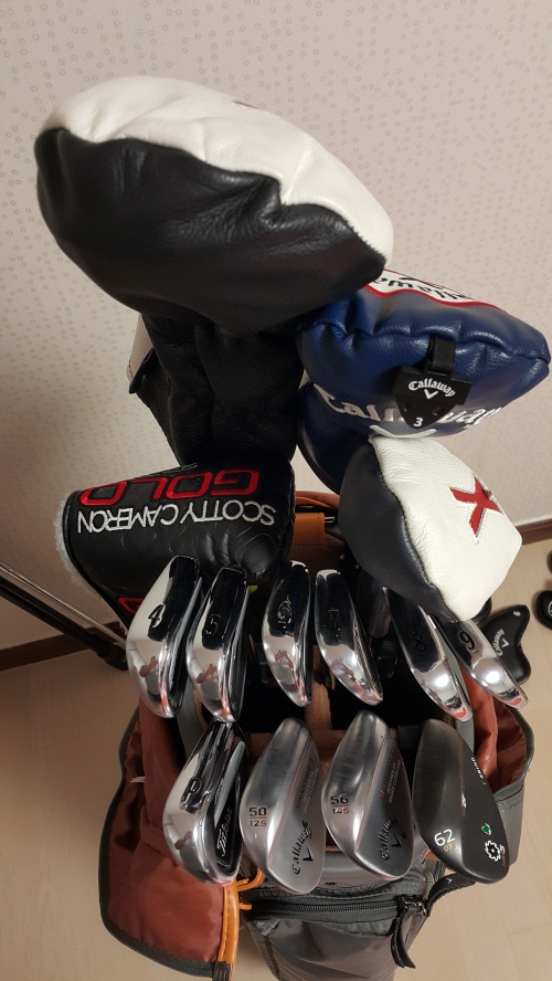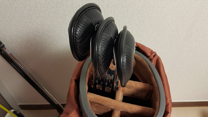 모두 장착하고 정리한 모습입니다. 클럽간에 간섭이 생기지 않아 아이언커버는 모두 벗겨버렸습니다.