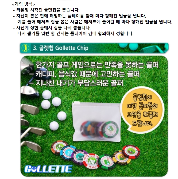 OB, 해저드, 쓰리펏, 벙커....등 7가지에 해당하면 그 칩을 골퍼가 가져가고