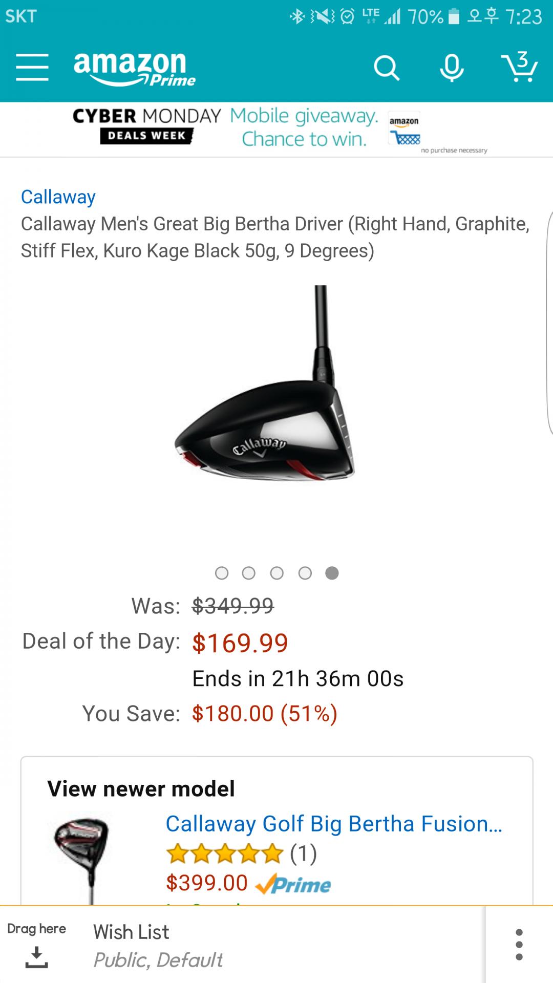 스펙 맞으시면 이제품이 프리오운드 보다 좋을 수도 있겠네요. 헤드커버도 제데로 올테고, 새제품에다가. |