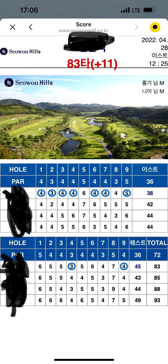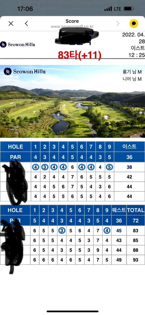 하도 아이언만 치다보니 어느 순간 힘빼고 치는 법을 익혀서 며칠전 서원힐스에서는 오랜만에 80대 초반까지 스코어가 내려왔습니다.
