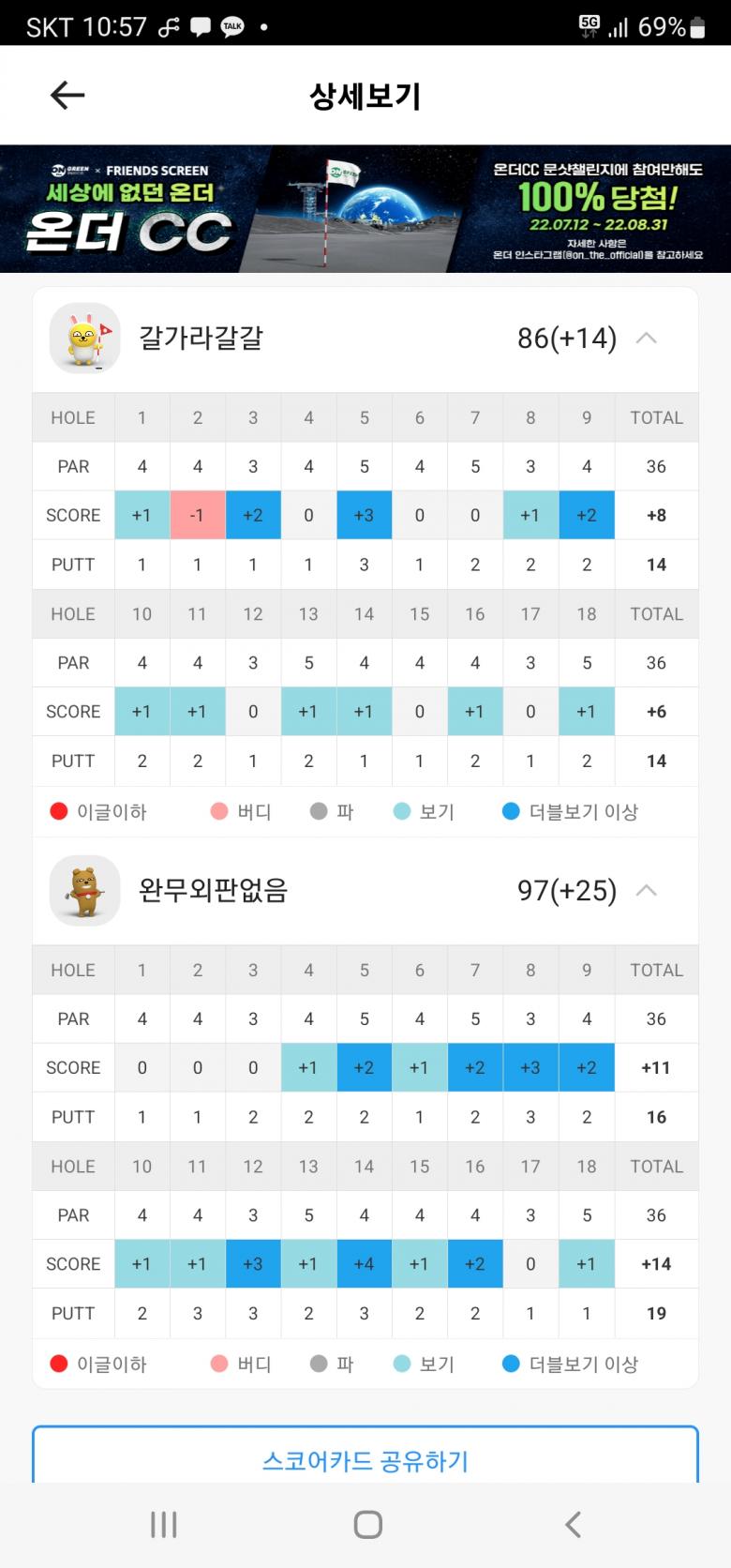 카카오스크린도 회원가입해서 치면 골프존처럼 핸디 나옵니다. 게임 끝나고 스크린 화면에 핸디대비 스코어까지 나오니 그걸로 하시면 됩니다.
