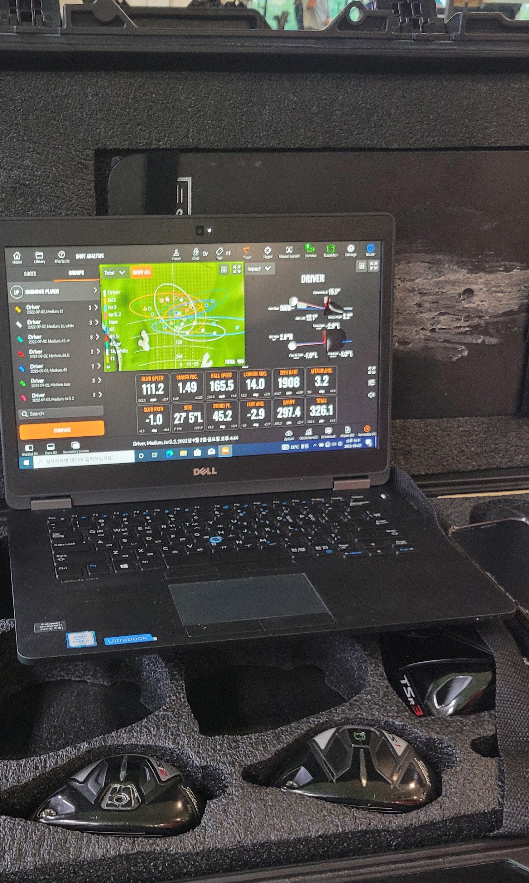 결과는 초 대박... 그냥 악성 스트레이트로 공 3개 연달아 320야드에 매우 작은 원안으로 꽂히네요.