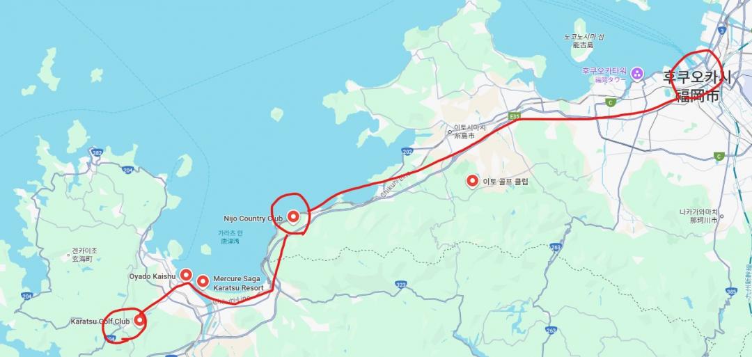 1박 2일을 할애해서 가라쓰 쪽으로 랜드해서 골프여행을 합니다.