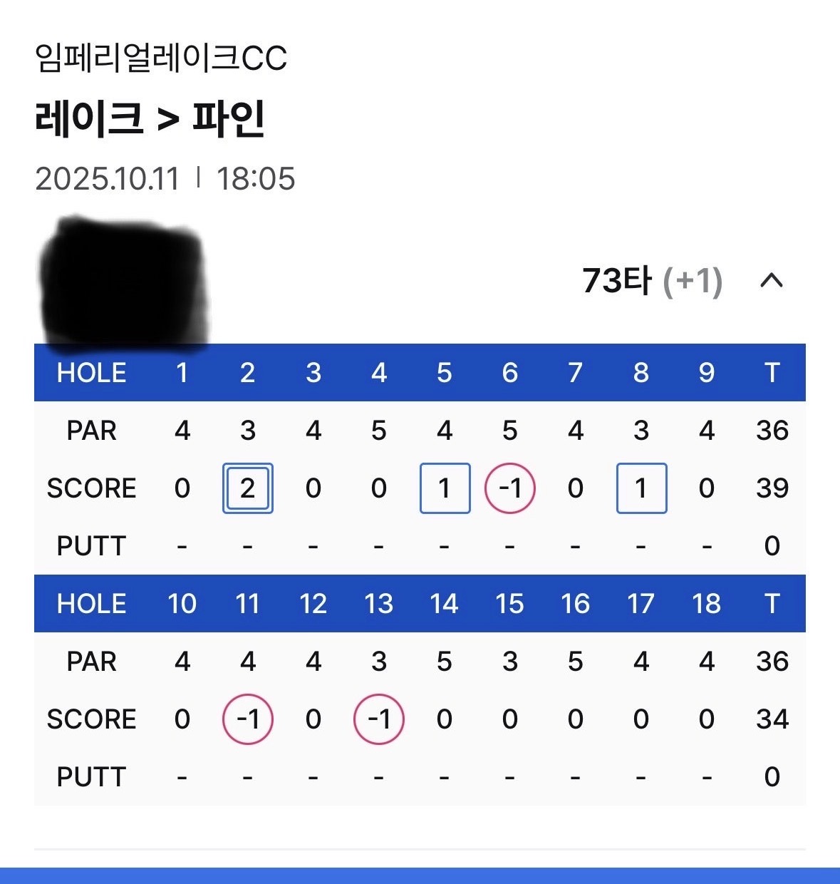 라베 축하드립니다! 두근거리셨을텐데 마지막 5홀을 다 파로 막으셨네요. |