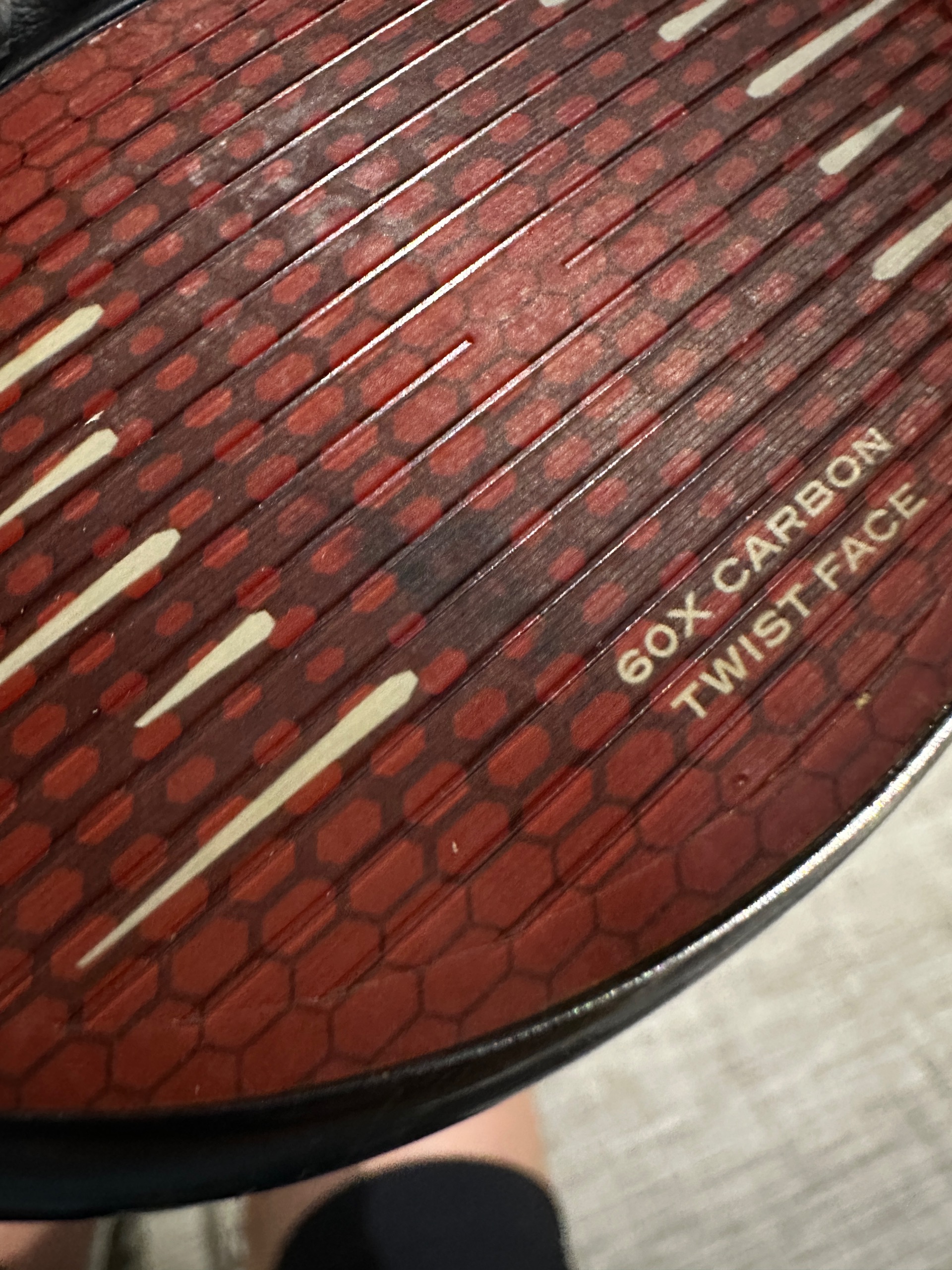 공에있는 네임펜자국이 채에 묻어날 수 있습니다. 아이언이나 다른드라이버는 묻으면 잘지워지는데 카본페이스는 안지워지더라구요.