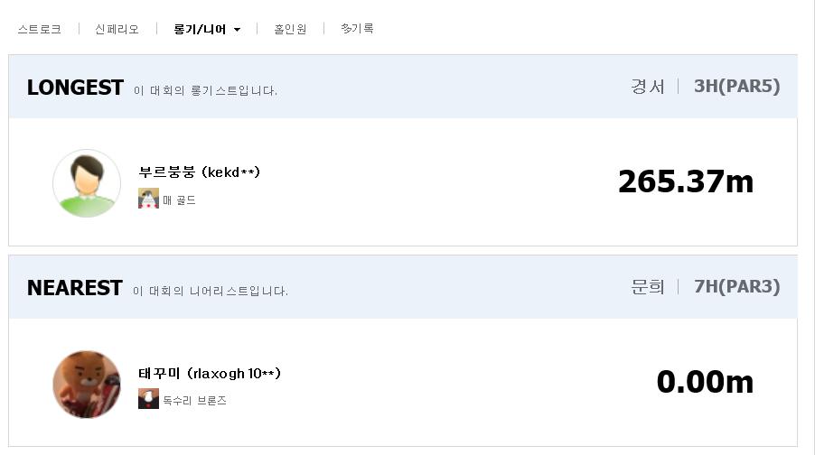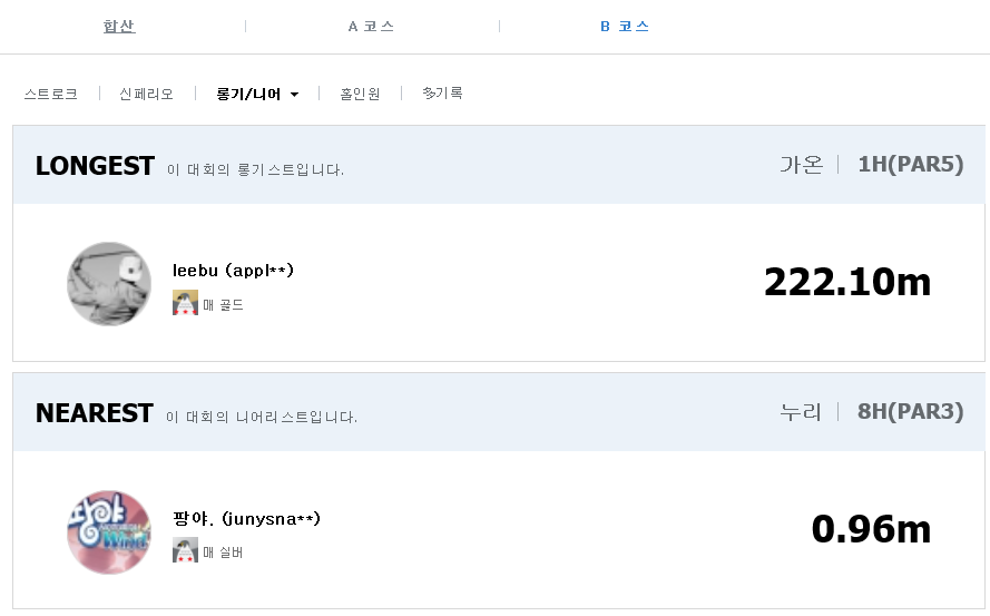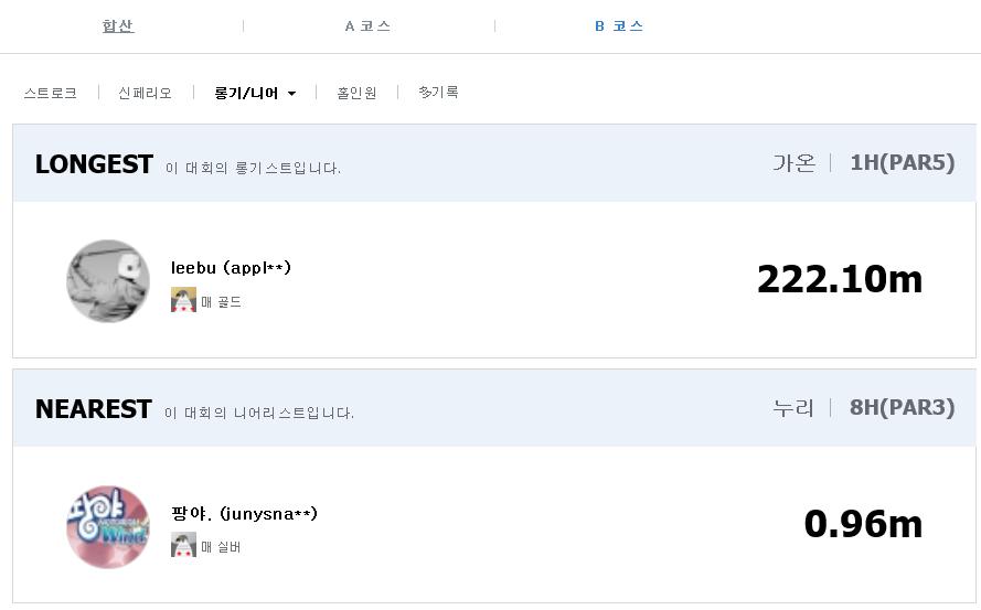 B코스 니어핀 : 팡야. (스트로크 시상으로 제외)