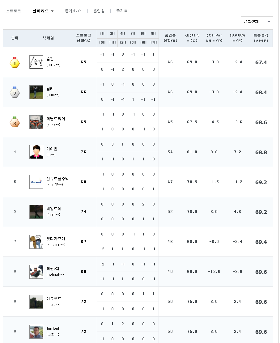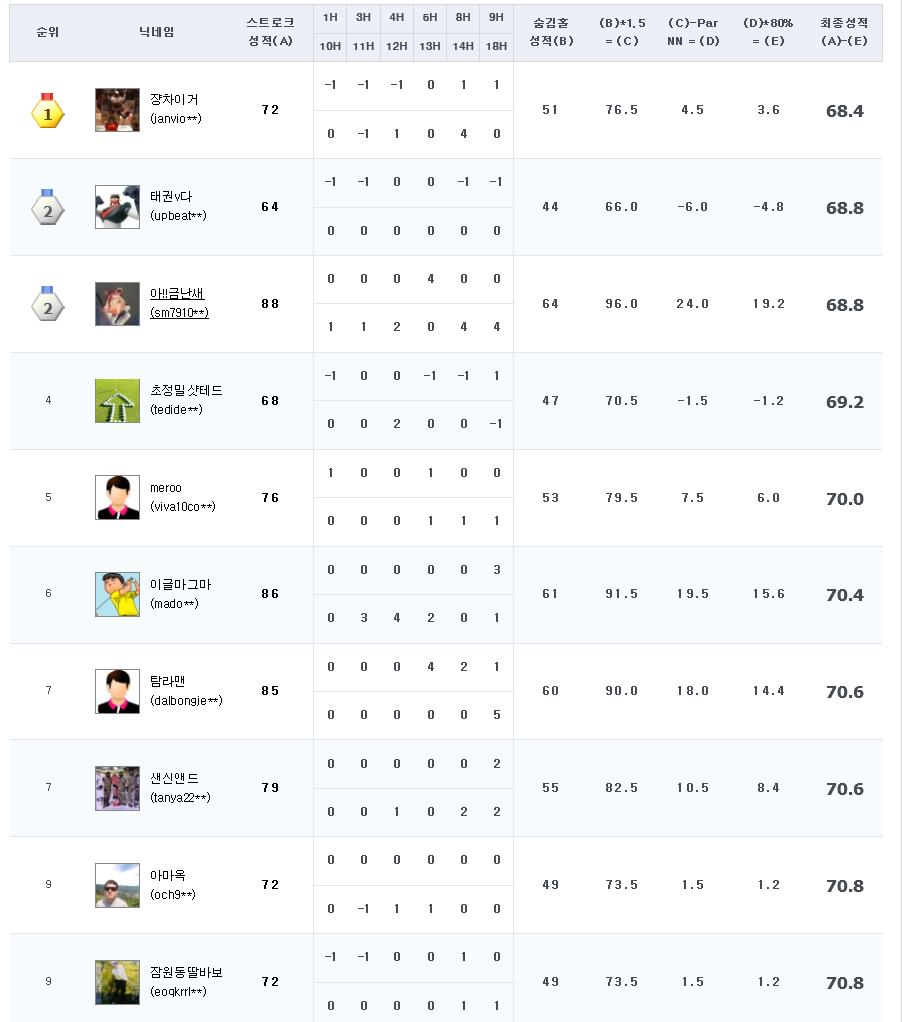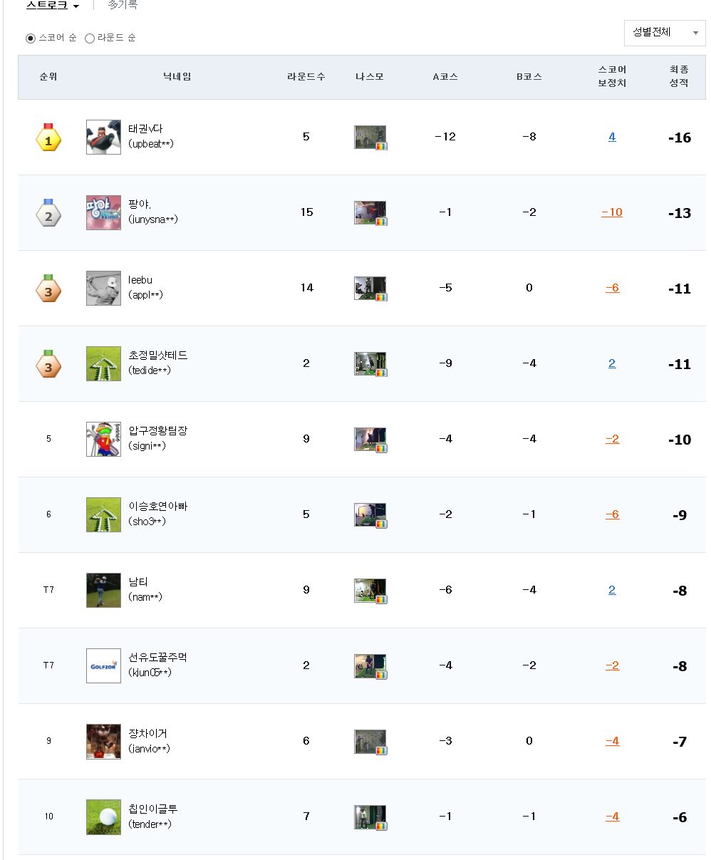 스코어 보정치가 -6, -10 이신 분들이 언더파를...쿨럭..