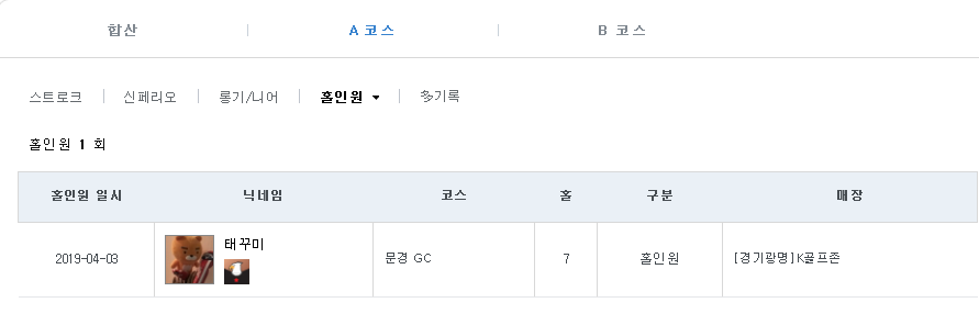 A코스 홀인원(니어핀) : 태꾸미