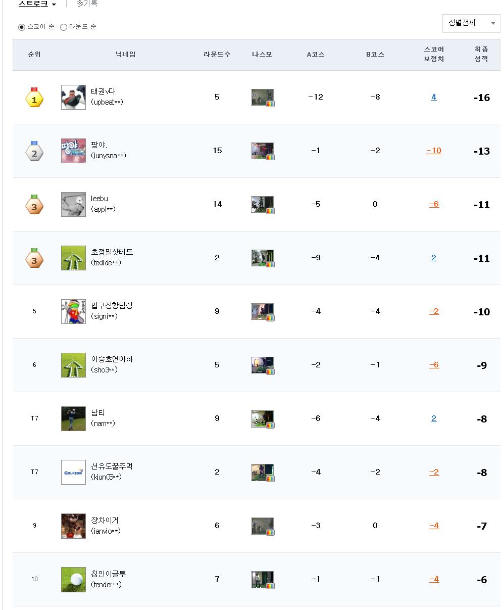 스트로크 1위 : 태권v다 (2월시상자 제외), 2위 팡야. 님 시상~