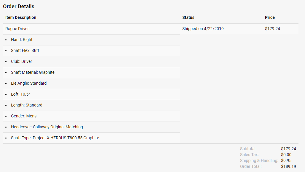 로그 10.5도 Project X T800 55 Stiff Average 등급입니다.