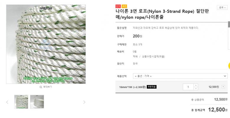 pp로프로 검색하니까 15mm 짜리는 기본적으로 100미터씩 파네요..ㄷㄷㄷㄷ