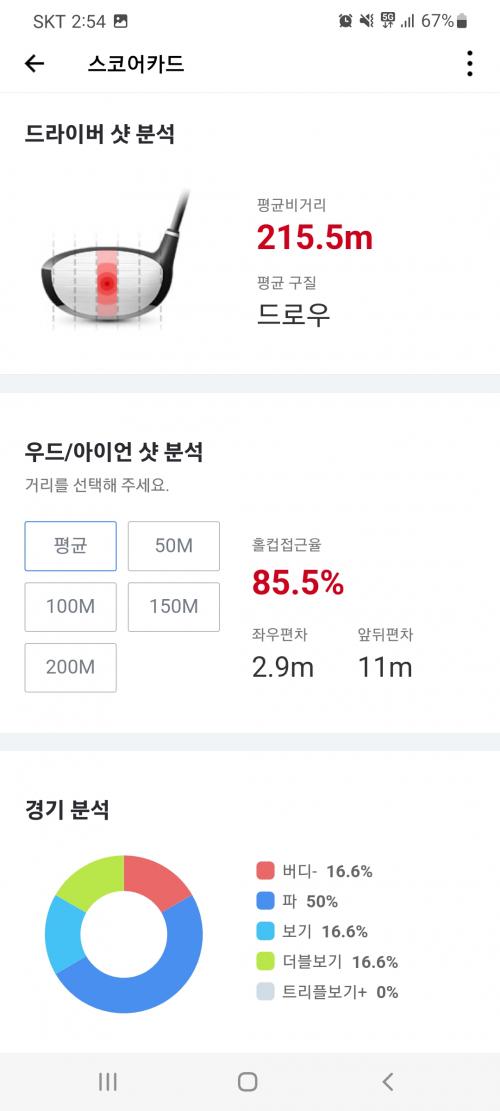 스크린에서 드라이버,아이언 거리가 늘기 시작하더니