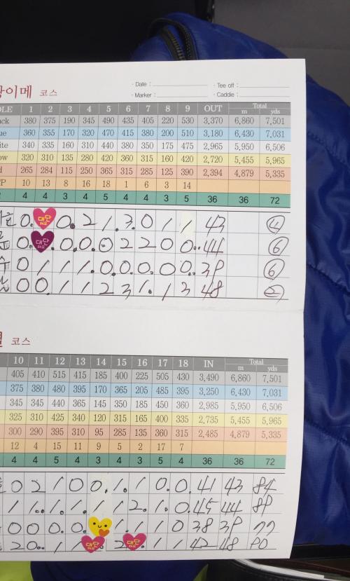 그제 라운딩의 얘기를 덧붙이자면 스코어 카드의 3등이 접니다 ㅠㅠ
