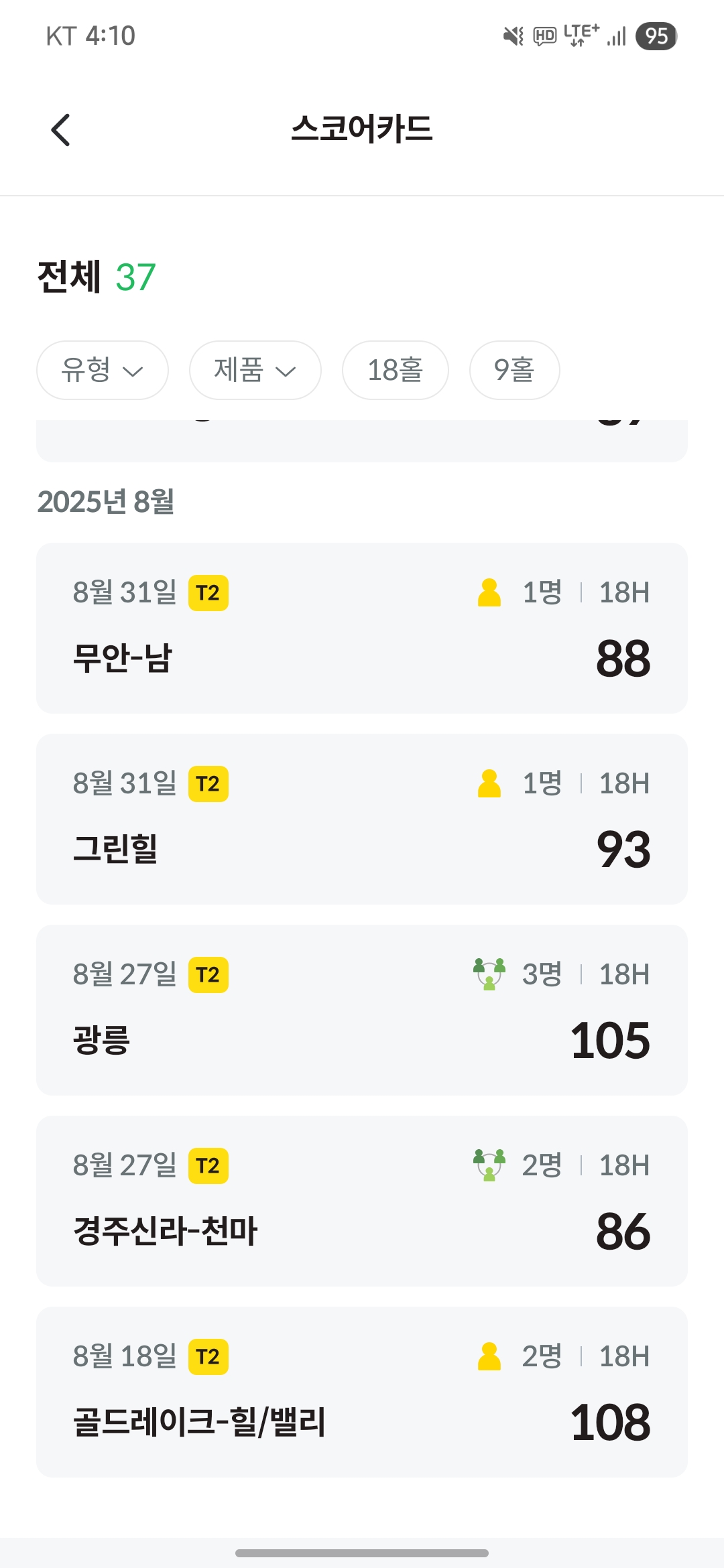 1달 동안 열심히 연습장을 다니다가 8월 중순 부터 스크린과 연습장을 병행하며 연습했고 스크린은 벌써 37회나 라운딩을 완료했습니다.