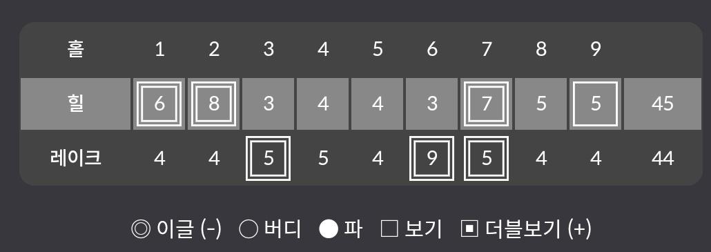 스코어 카드보면 더블 이상한거는 오비로 죽은 홀입니다 ㅎㅎㅎ 다 살았으면 80초까지 갔겠죵