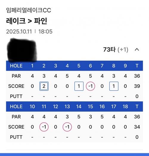 라베 축하드립니다! 두근거리셨을텐데 마지막 5홀을 다 파로 막으셨네요. | ||