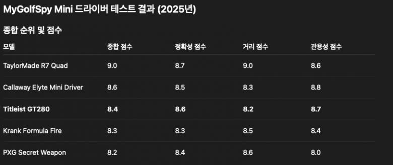 저는 미니 드라이버를 안 써서 관심이 없긴하지만 어젠가 나온 미국에서 나름 신뢰도 가장 높은 리뷰업체 중 하나인 마이골프스파이에서 발표한 내용으론 미니드라이버 중 R7이 거의 모든 지표에서 압도적 1등이라고 발표하긴 했습니다.