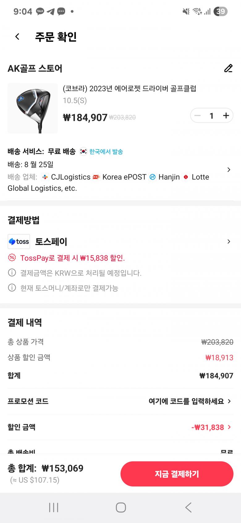 핑 테일러메이드 좋은거 사놔야 실력이 안좋아 저렴이로 에어로젯 구매 연습용도입니다.